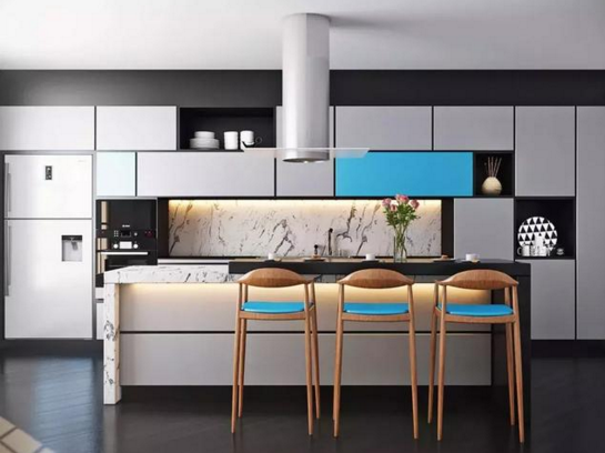 藍(lán)與白的結(jié)合,猶如西班牙蔚藍(lán)色的海岸與白色沙灘;希臘的白色村莊,在碧海藍(lán)天下,簡直是制造夢(mèng)幻的絕佳搭配。用在廚房中,凸顯雅致和清新。