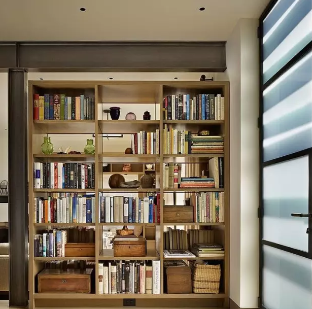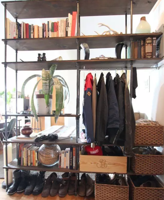 書(shū)架作為隔斷是我們多次提倡過(guò)的,擺到玄關(guān)處也未嘗不可。