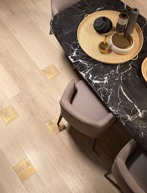 點(diǎn)綴式鋪貼一般用磚較少,且有一定的規(guī)律性,讓空間顯得更有精致感。