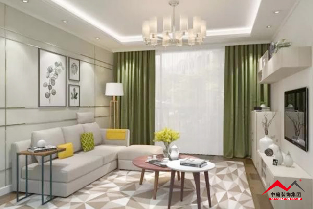 b、窗簾跟著次色調(diào)走是最安全的選擇,不一定要完全一致,只要顏色呼應(yīng)。比如選擇窗簾就可以考慮地毯或者茶幾桌布的顏色,在挑選的時候可以接近其顏色,整個空間就相得益彰。