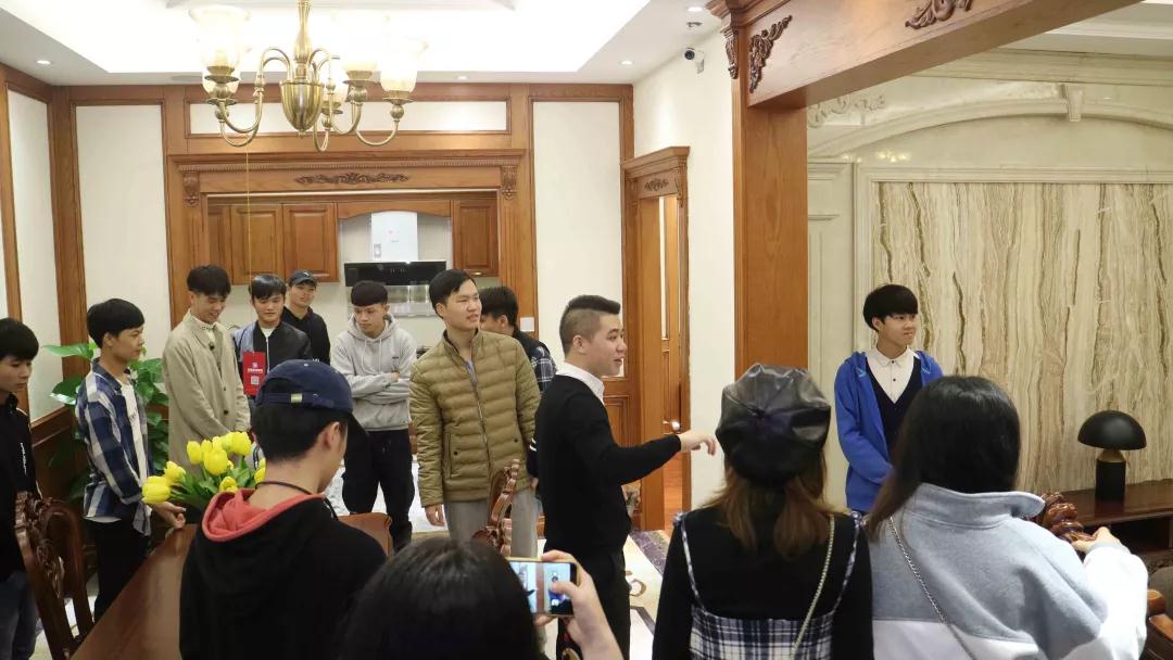 中庭裝飾集團二樓擁有9個設計風格的樣板間,張總和楊總帶領學生參觀各大風格樣板間,給同學們講解樣板間的設計風格,感受其中的設計細節(jié)。