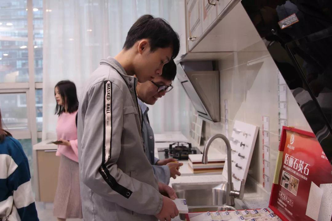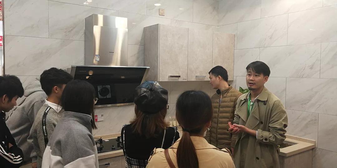 在廚房展示區(qū),設計部經(jīng)理韋昌豪和學生分享:“如果同學們今后決心要成為一名設計師,現(xiàn)在開始就要關注一些基礎的設計上的問題,對廚房的配置多做基礎的了解,平時也可以自己拿尺子量一些門、窗的尺寸。設計源于生活,設計師做出的設計也要根據(jù)現(xiàn)實生活來落地?!?