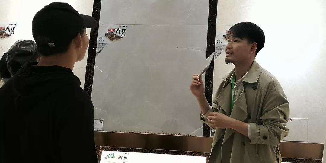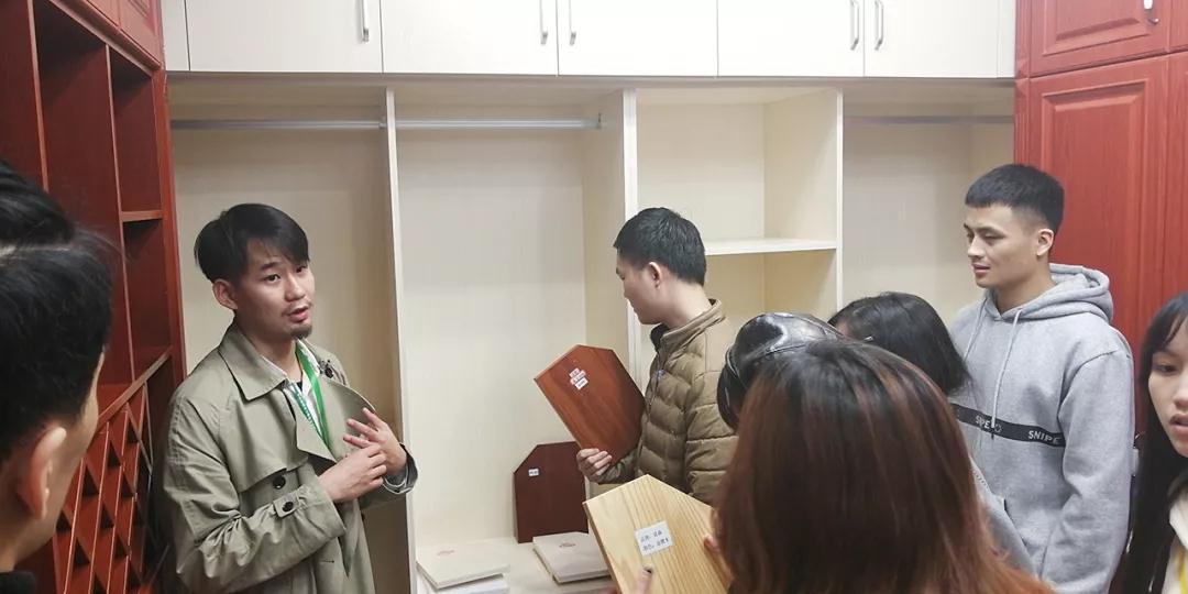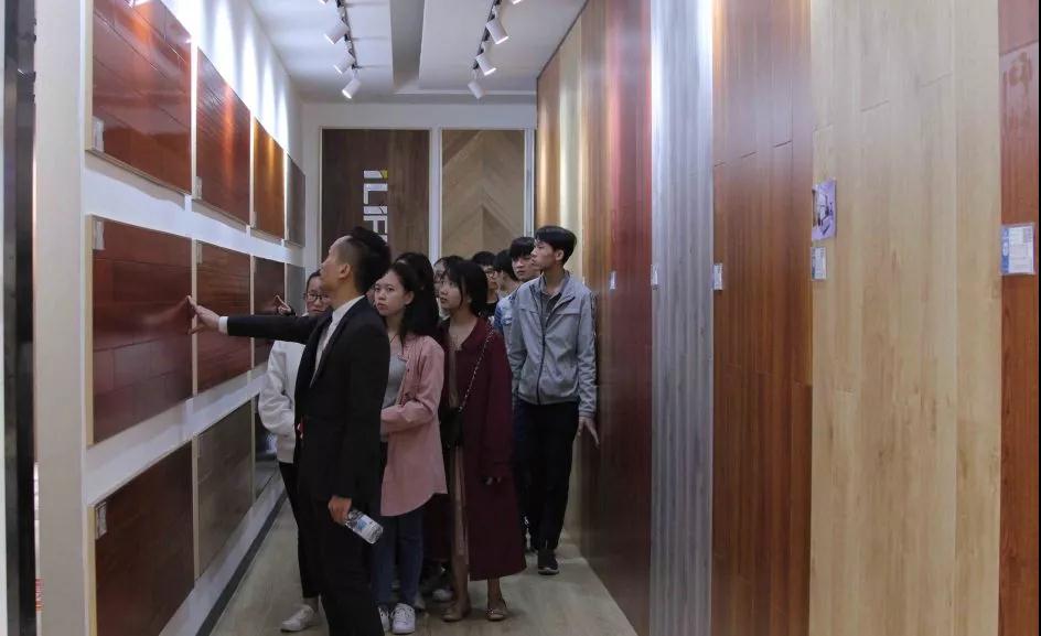 材料展示區(qū)由運營部總經(jīng)理楊總和設計部經(jīng)理韋昌豪帶領學生參觀。