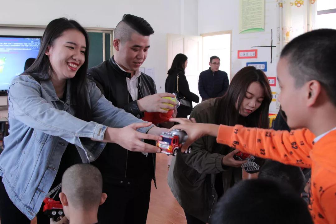集團有愛的家人給孩子們送上禮物、玩具。