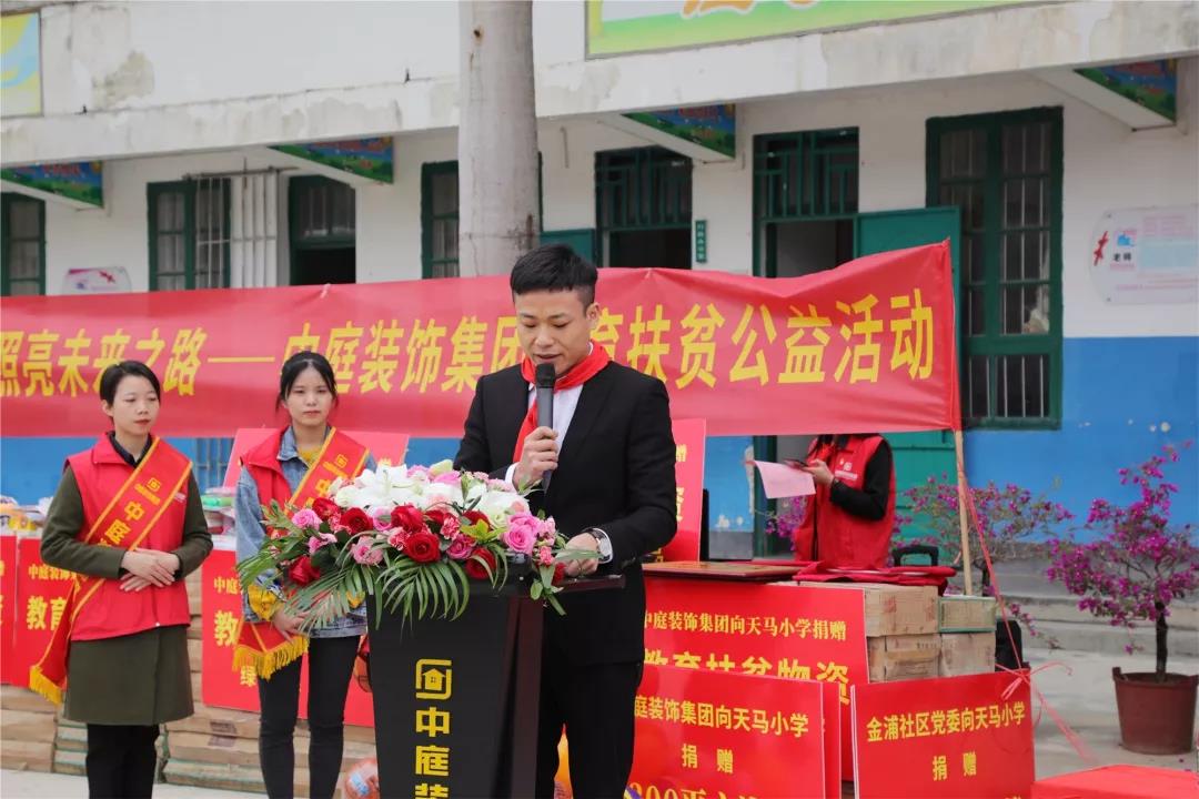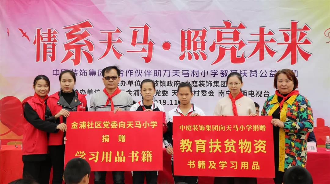 秉承著“源于社會(huì),回饋社會(huì)”的社會(huì)責(zé)任理念,在中庭裝飾集團(tuán)九周年慶之際,集團(tuán)攜手戰(zhàn)略合作伙伴組成愛(ài)心助力團(tuán)前往武鳴區(qū)天馬村天馬小學(xué)開(kāi)展教育扶貧公益活動(dòng)。