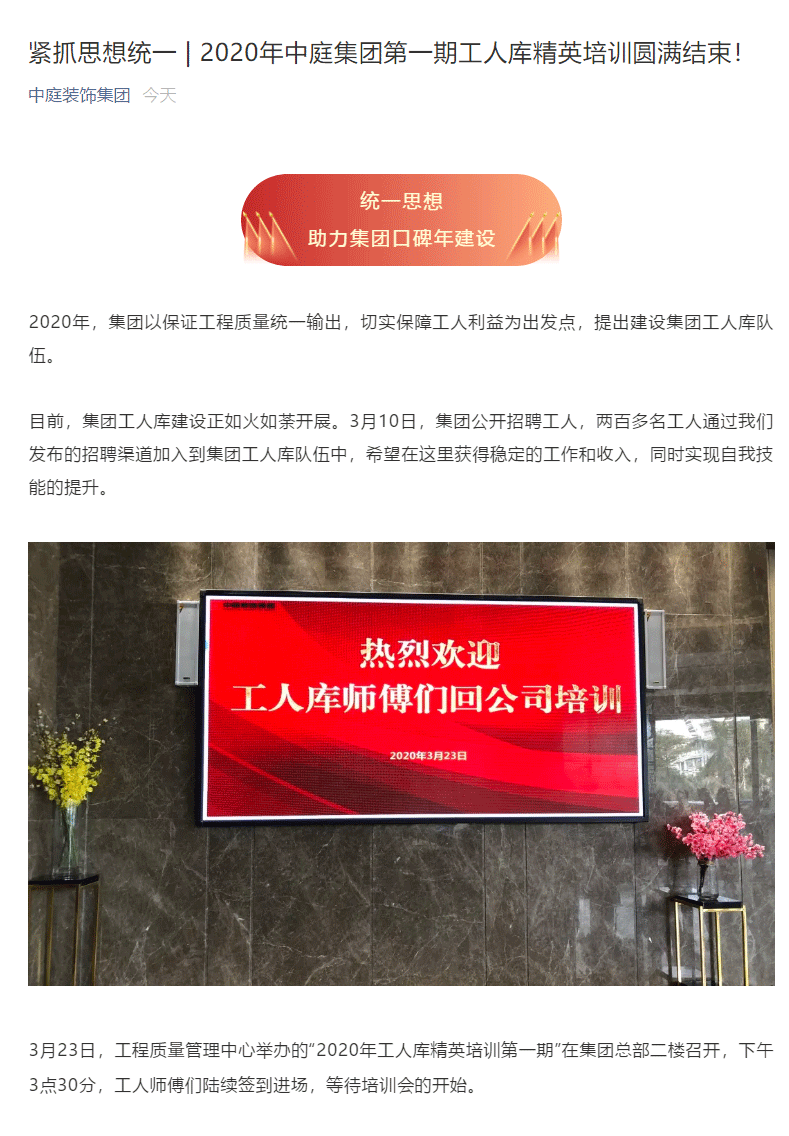 緊抓思想統(tǒng)一 | 2020年中庭集團(tuán)第一期工人庫(kù)精英培訓(xùn)圓滿結(jié)束!