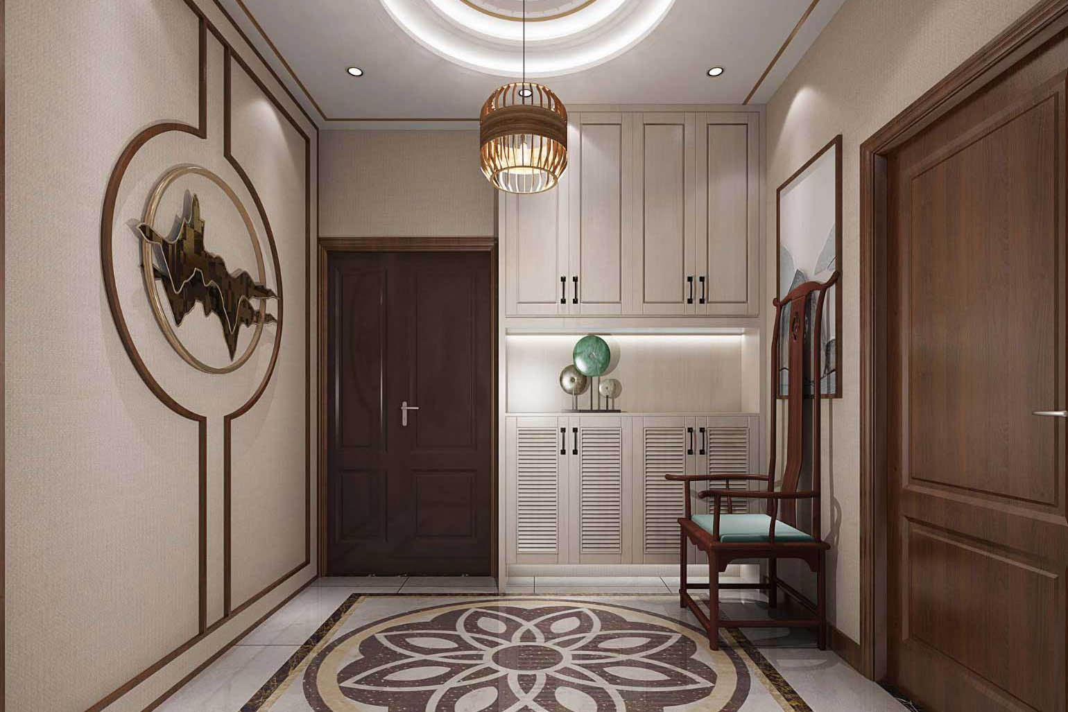 瀏覽量:477該案例屬于新中式風(fēng)格。該案例沿用的傳統(tǒng)的中式風(fēng)格的布局理念,需要保持最大限度的利用好整體空間的采光、通風(fēng),其次的空間布局應(yīng)該以房屋主人的生活習(xí)慣和個(gè)性需求來進(jìn)行設(shè)計(jì)。對(duì)于整體空間的設(shè)計(jì)還需要與房間中的家具布置進(jìn)行搭配,合理的運(yùn)用室內(nèi)的家具以及裝飾性的工藝品可以得到一個(gè)更為合理的空間布局。